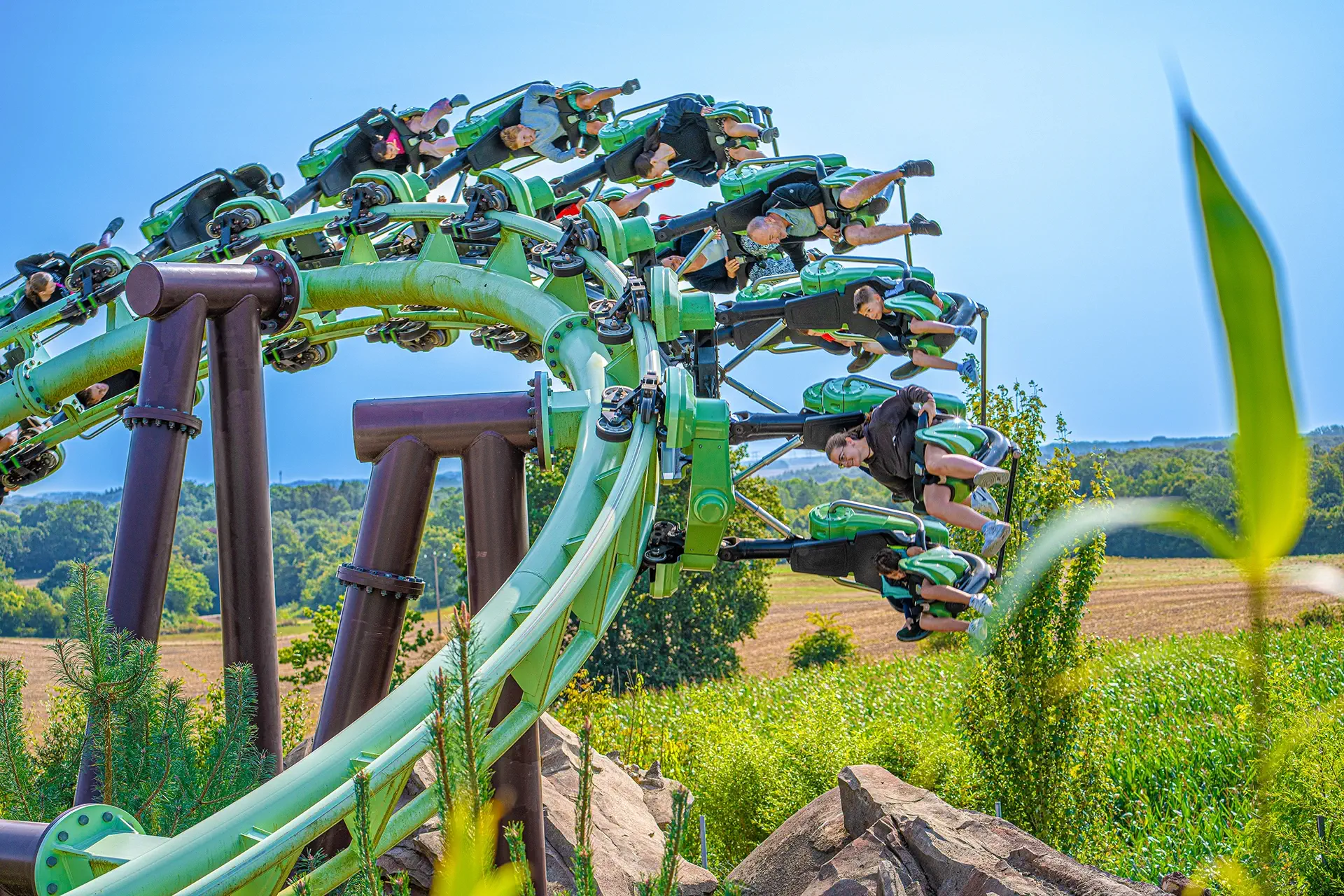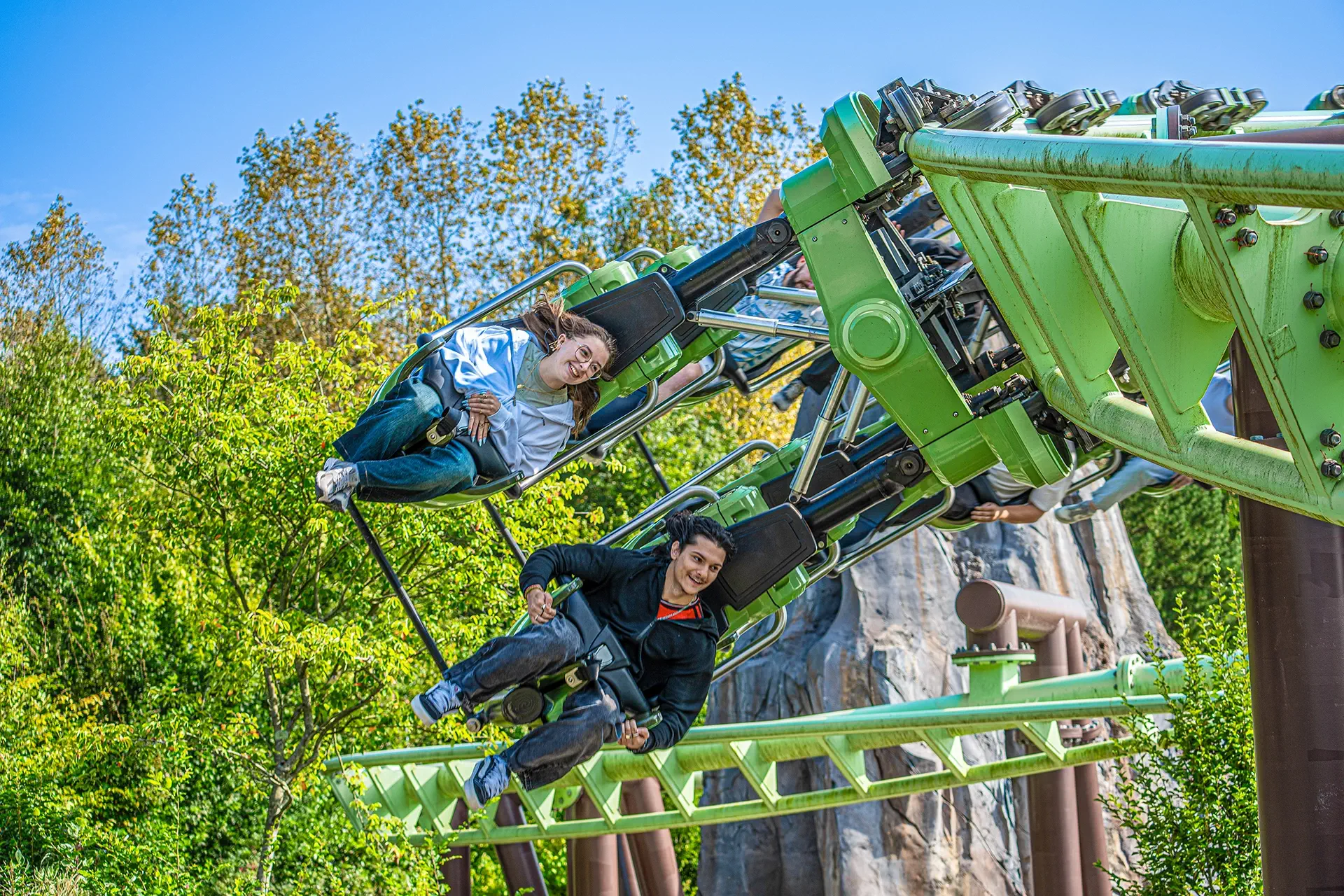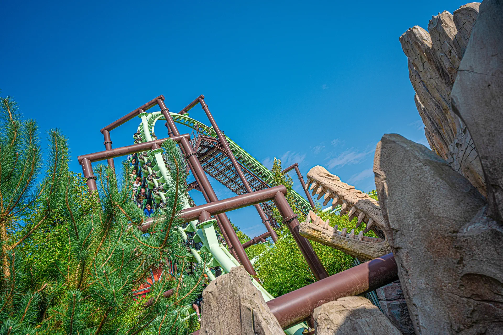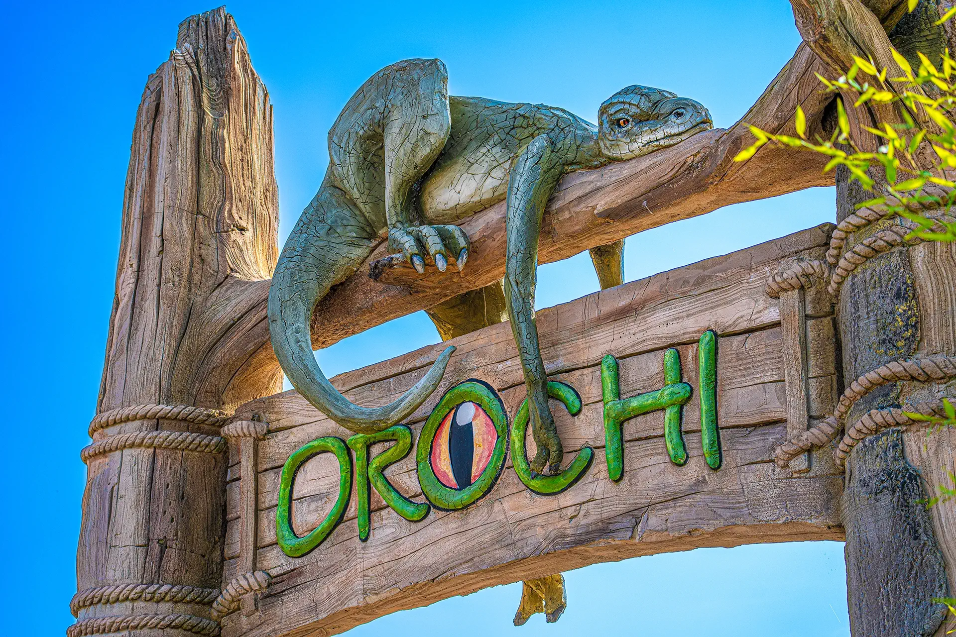 Oserez-vous affronter Orochi ? Suspendus sous les rails de cette nouvelle attraction, vous plongerez à 70 km/h pour un parcours décoiffant dans cet univers jurassique sensationnel.